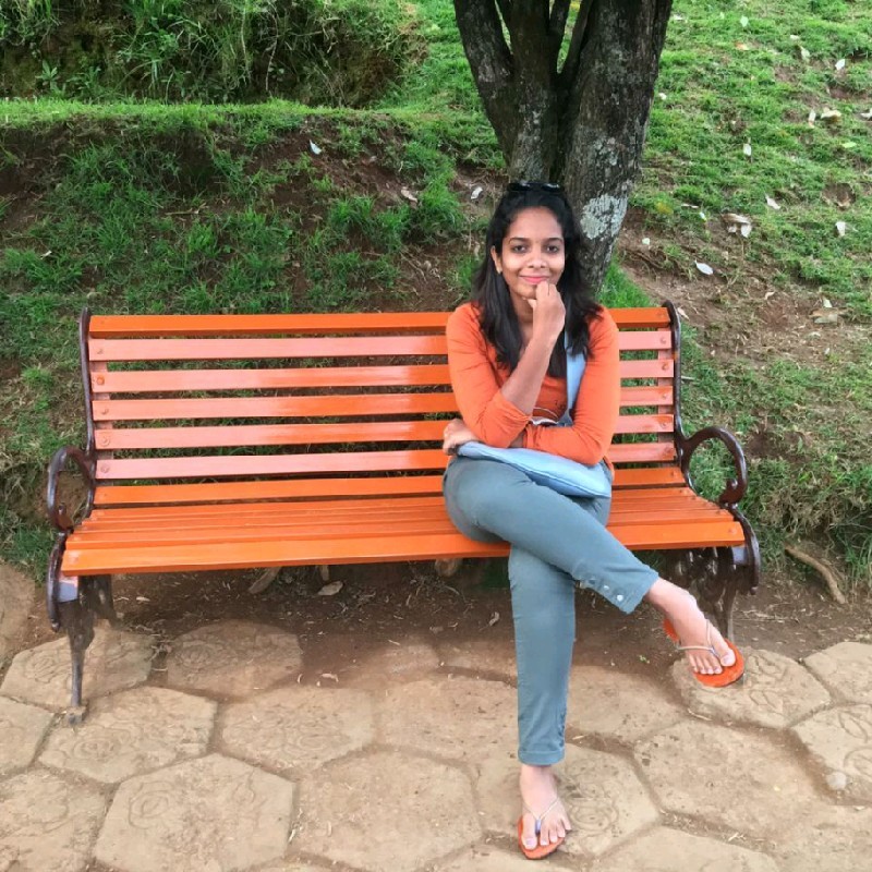 This image captures Akshaya Kannan, a former student of our immersion program squad #1 in 2017. She is now working for Narayana Educational Society in Thanjavur. In the photo, Akshaya is seen smiling at the camera in casual attire. She was a French trainer during her time as a student, and her dedication and hard work were evident throughout the program.